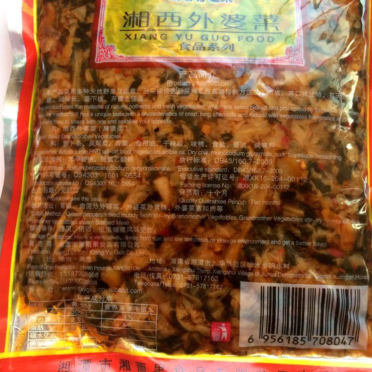 Hunan special production Xiangxi Granny dish 250 gr XiangHugo Granny Granny Vegetable Sauce with Salt Dish of the Vegetable Salt Dish