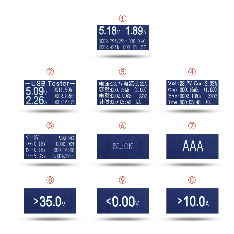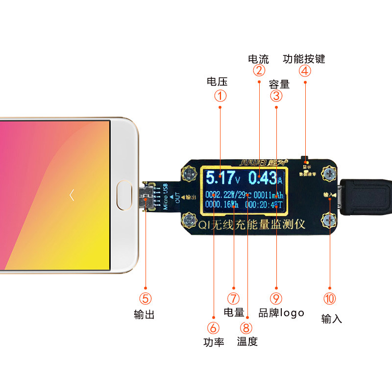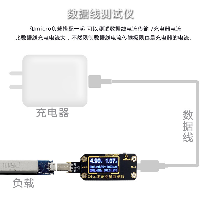 Torch for Micro Android DC current voltmeter Data line QI wireless charger testing tester Power meter