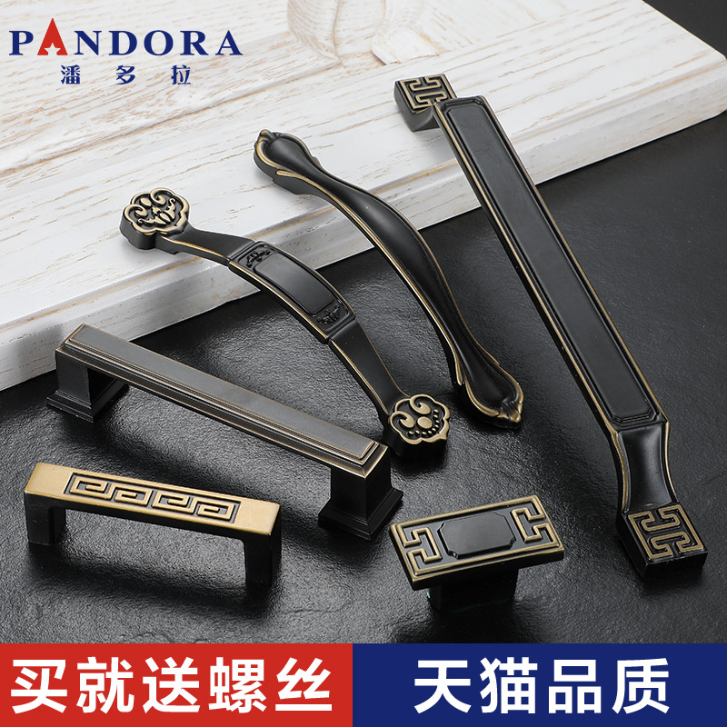 Pandora antique black brass integral cabinet handle American black door handle Eurostyle wardrobe single-hole drawer handle