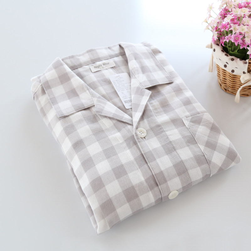 Day Ensemble Cotton Cotton Cloth Couple Sleepwear Women's Summer Thin style casual No Inprint Wind Short sleeves Long pants Men's Home Home Clothing