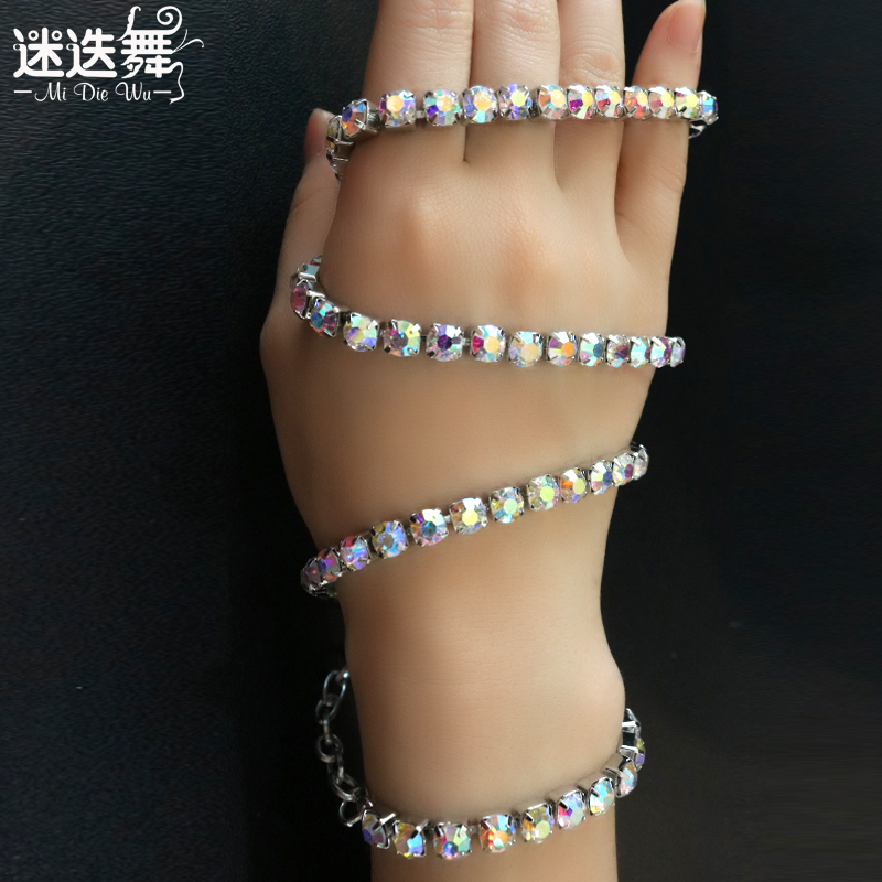 Rosemary Dance Belly Dance Waist Chain 2019 New Fancy Color Diamond Thin Chain Dance Umbilical Chain Bracelet Thin Belt 2 pieces