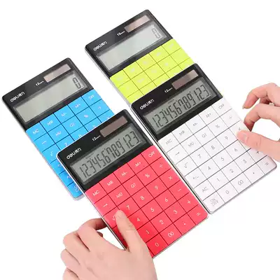Deli computer office fashion female calculator Cute Korean candy color solar energy student exam computer small portable small accounting special large screen large button computer
