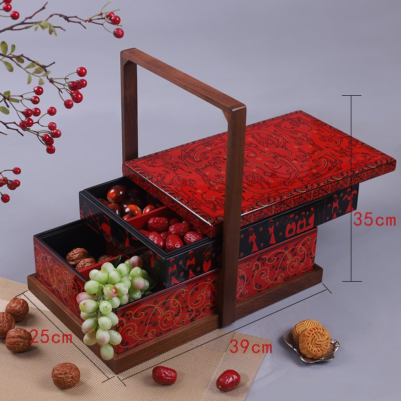 Hand-painted Hamlet Box Retro Double Layer Food Box Chinese Accompany Wedding Gift Gold Case High-end Lacquer Mid-Autumn Festival Mooncake gift box