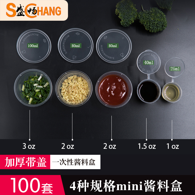 Shengchang disposable seasoning box sauce cup 25 to 100ml plastic mini box with lid packing box batch