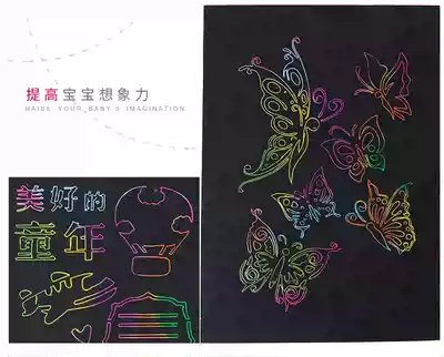 8k children's colorful scraping paper Color scraping paper non-toxic scraping wax paper graffiti paper 8 open and send 20 pieces of bamboo pen