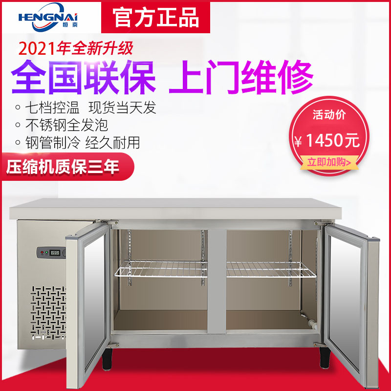 Hengnai fresh-keeping refrigeration workbench Commercial refrigerator freezer Fresh-keeping cabinet Frozen freezer Large capacity flat-cooling console