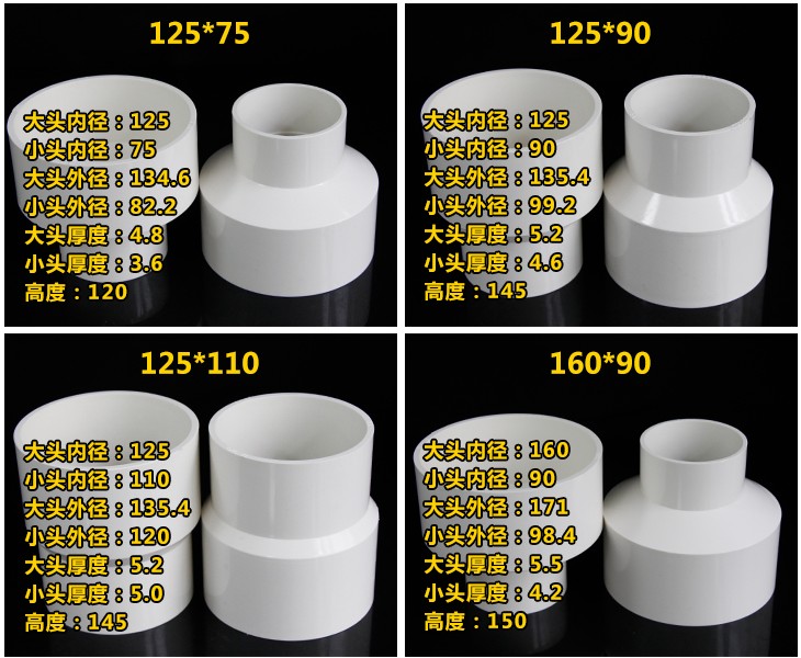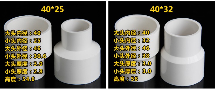 PVC size head heterovarisant diameter joint