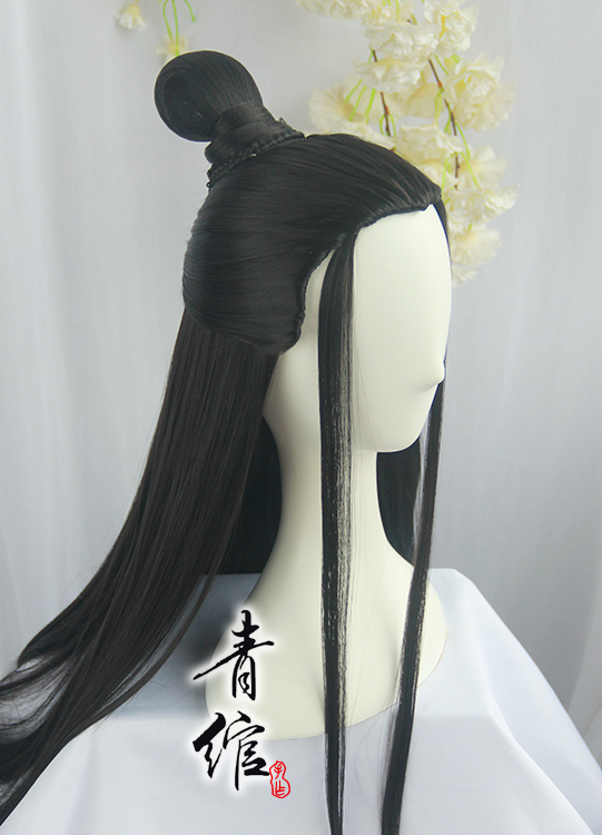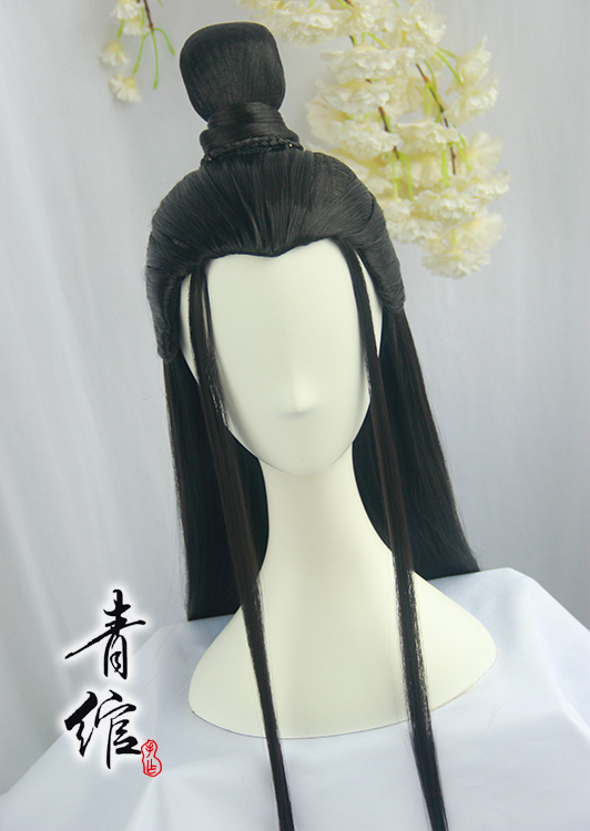 (Youth) Ancient Wind COS Ancient dress Film and TV Night Huanghanfu Black Wanked with Beauty Tip Styling Wig Headgear Man