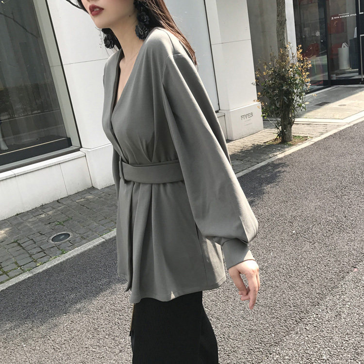(LAMOBO exclusive @ special) deep V collar retro lantern cuff close-back cardiovert