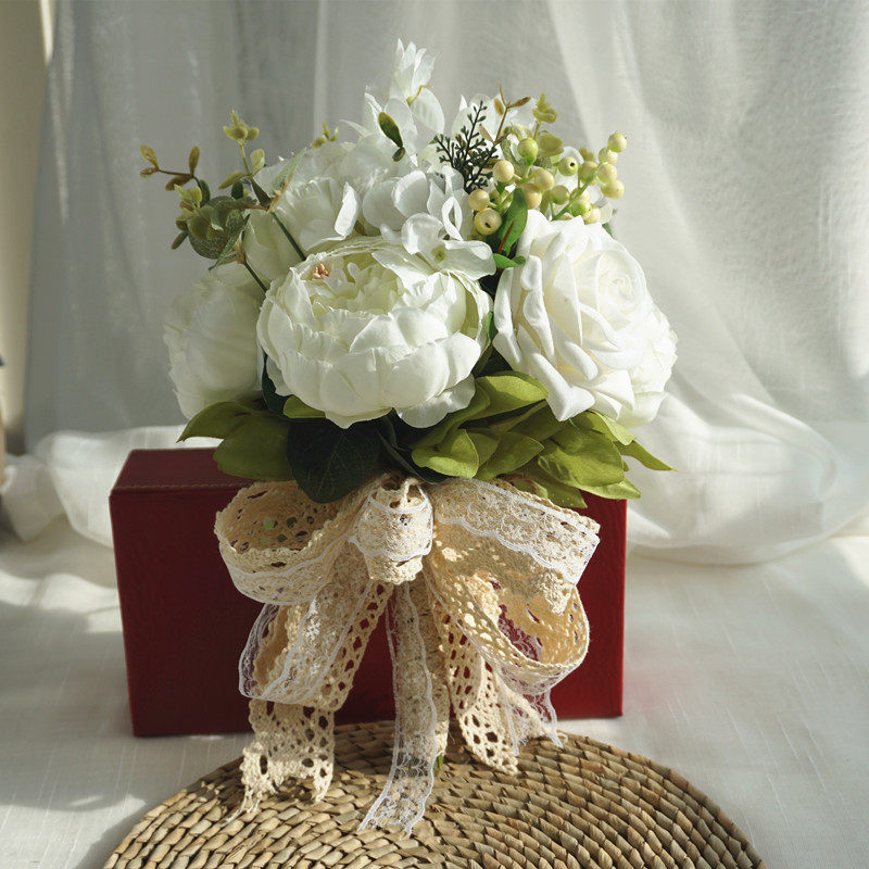 European style Western simulation bride holding flower white rose peony wedding photography props wedding photo Flower Ball