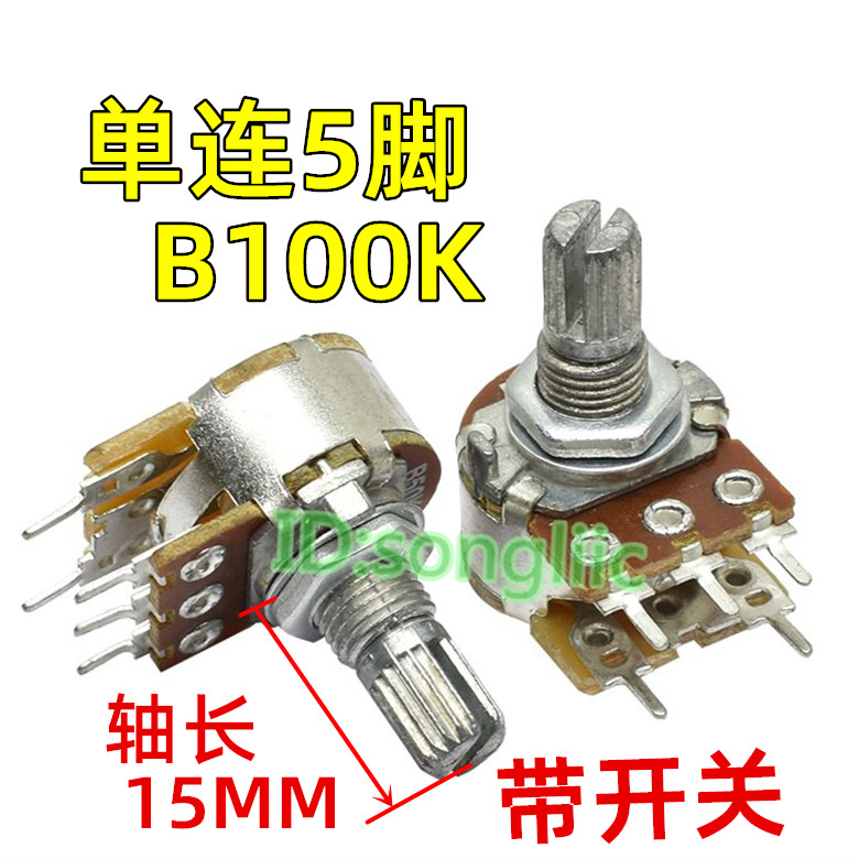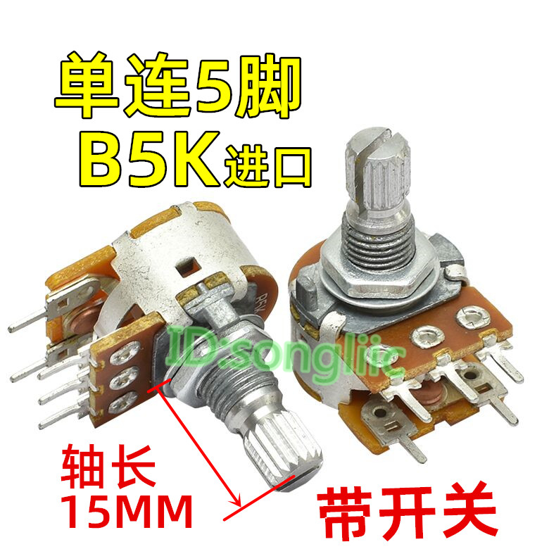 Single 5-pin with switch B5K B10K B50K B100K small audio amplifier tuning potentiometer Single