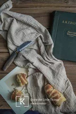 Japanese cotton and linen texture raw edge food napkin tea towel background cloth shooting props