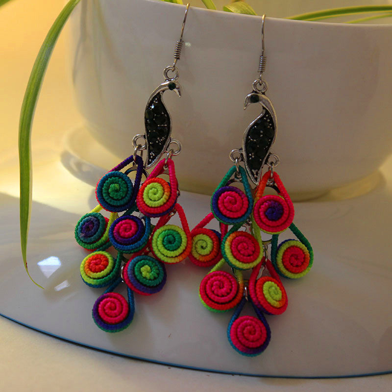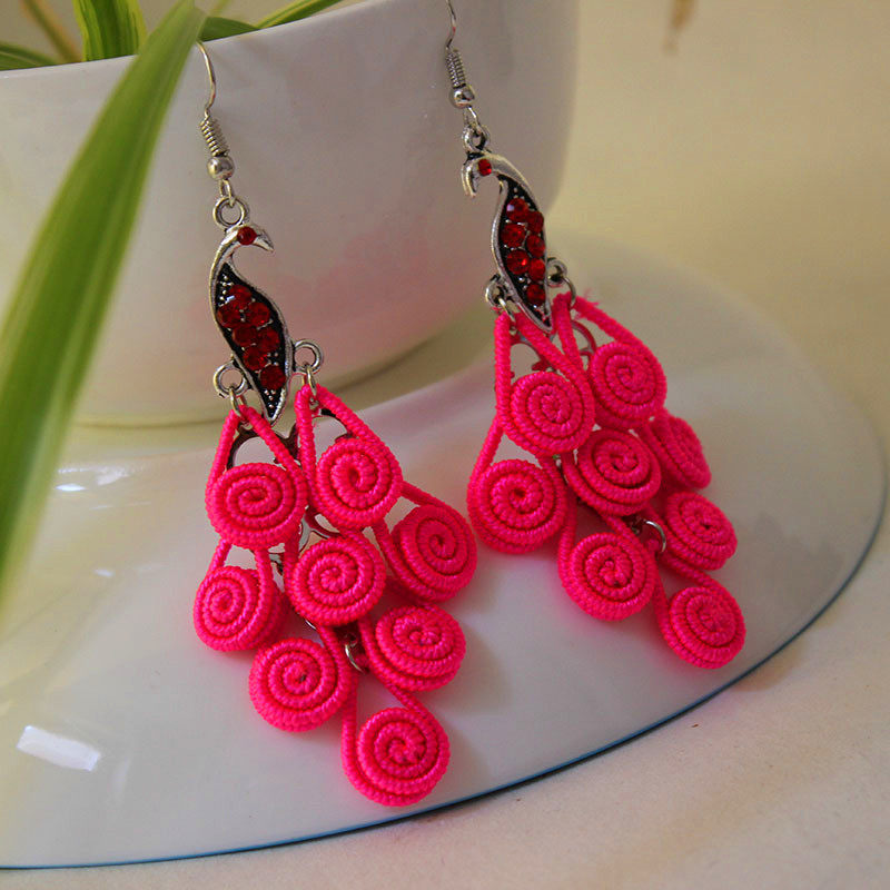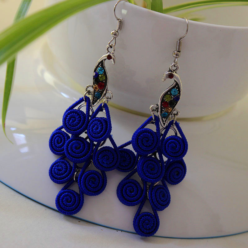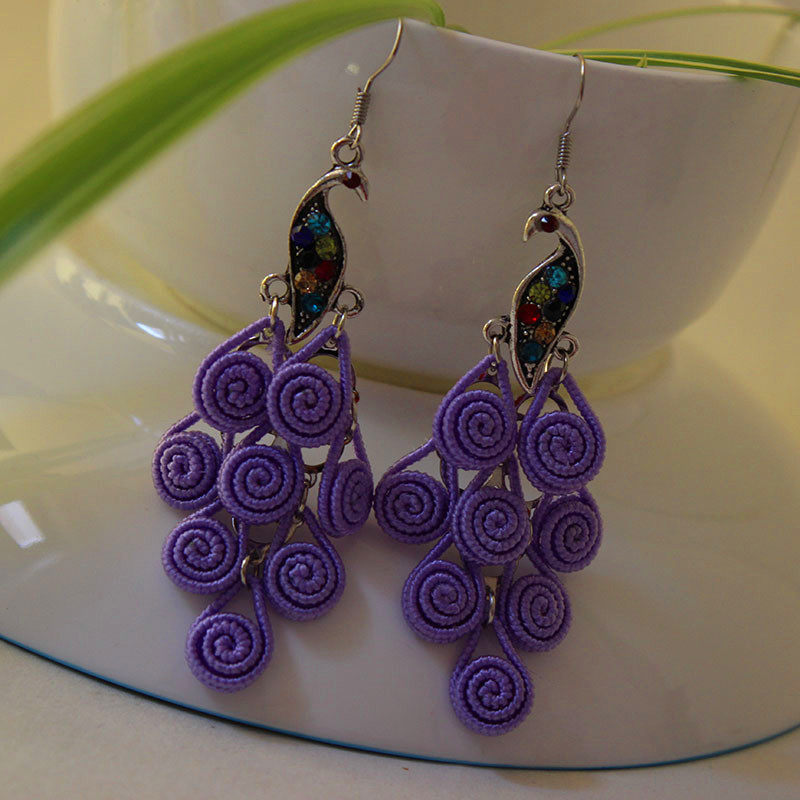 National Wind Artisanal Peacock Earrings Original Medium Long Version Ear Pendant China Wind Clothing Accessories Square Dance Adornment