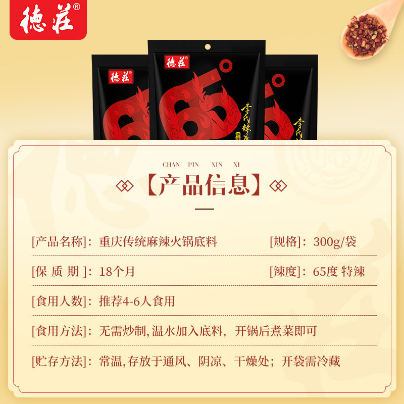 Chongqing Dezhuang special spicy 65°traditional hot pot base Devil pepper Sichuan spicy butter 300g dry pot seasoning