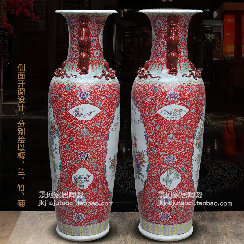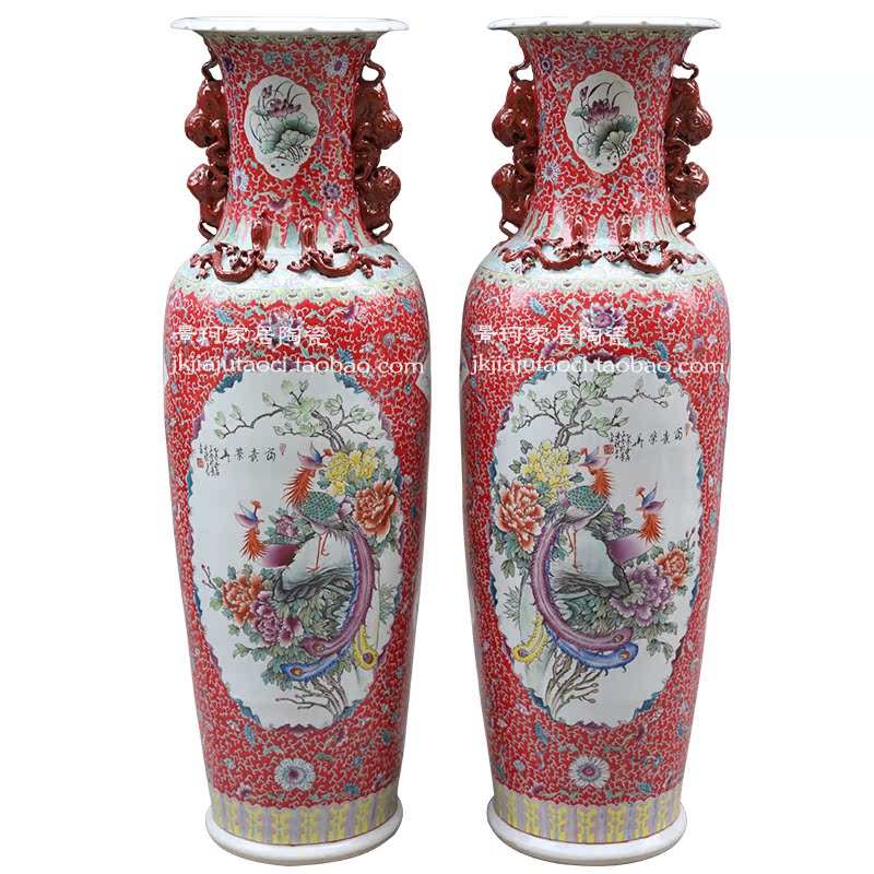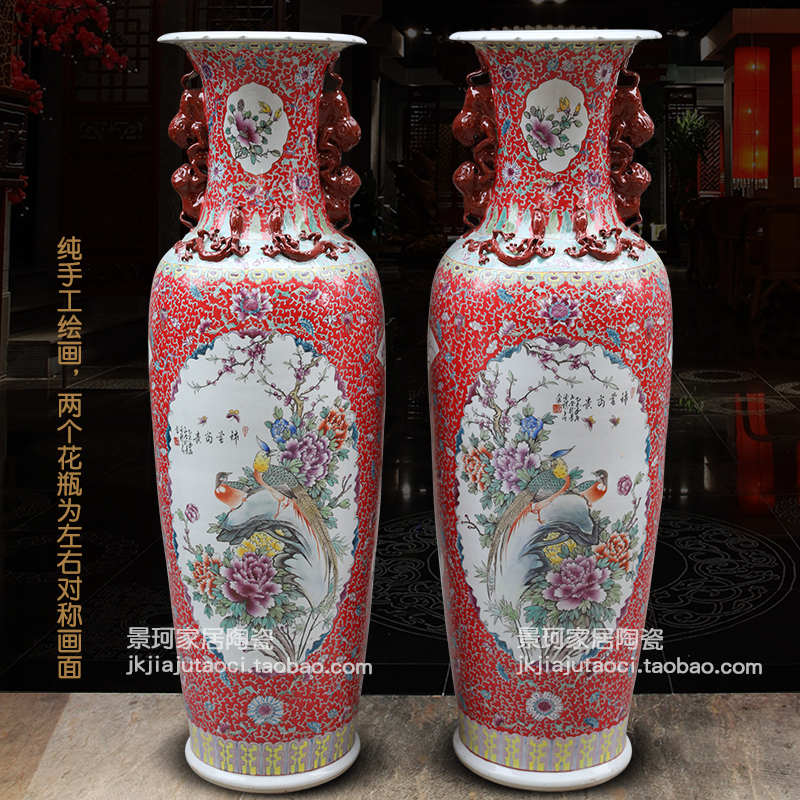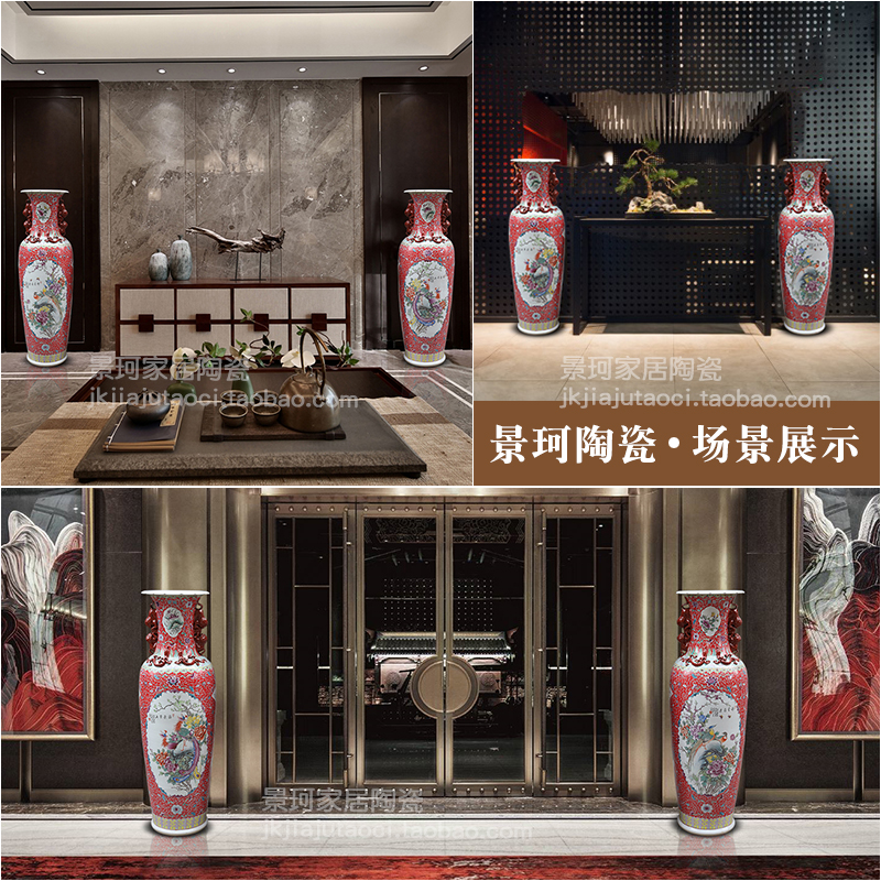 Jingdezhen ceramic hand-painted pastel oriental watch ear landing large vase living room ornaments company opening hotel lobby