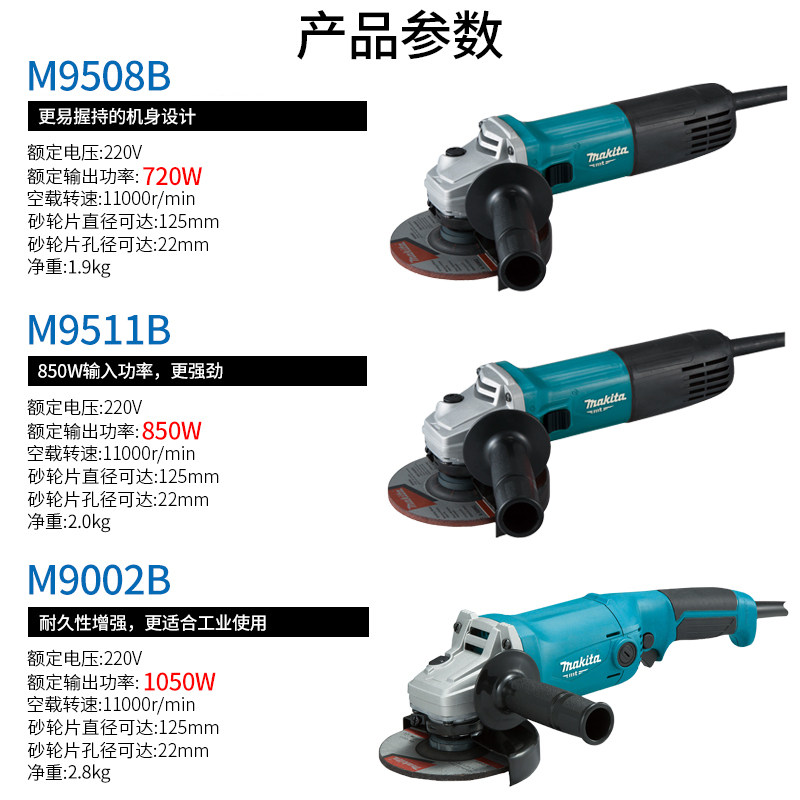 (Type 125 720W) M9508B angular mill (Type 125 850W) M9511B angular mill (Type 125 1050W) M9002B angular mill (1