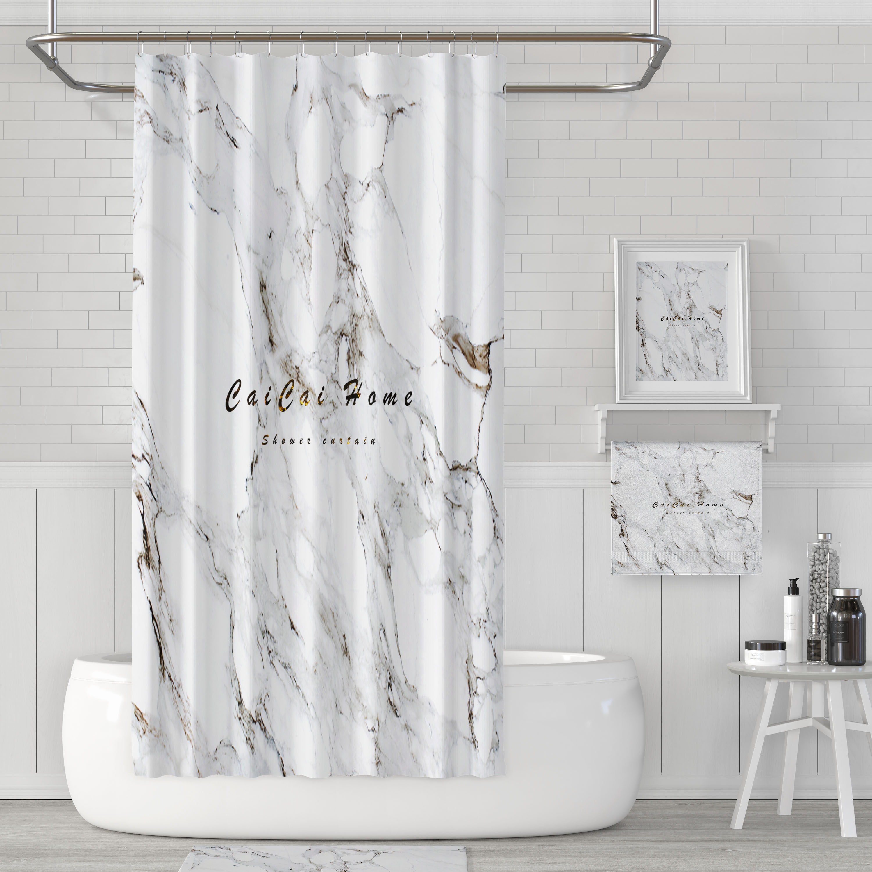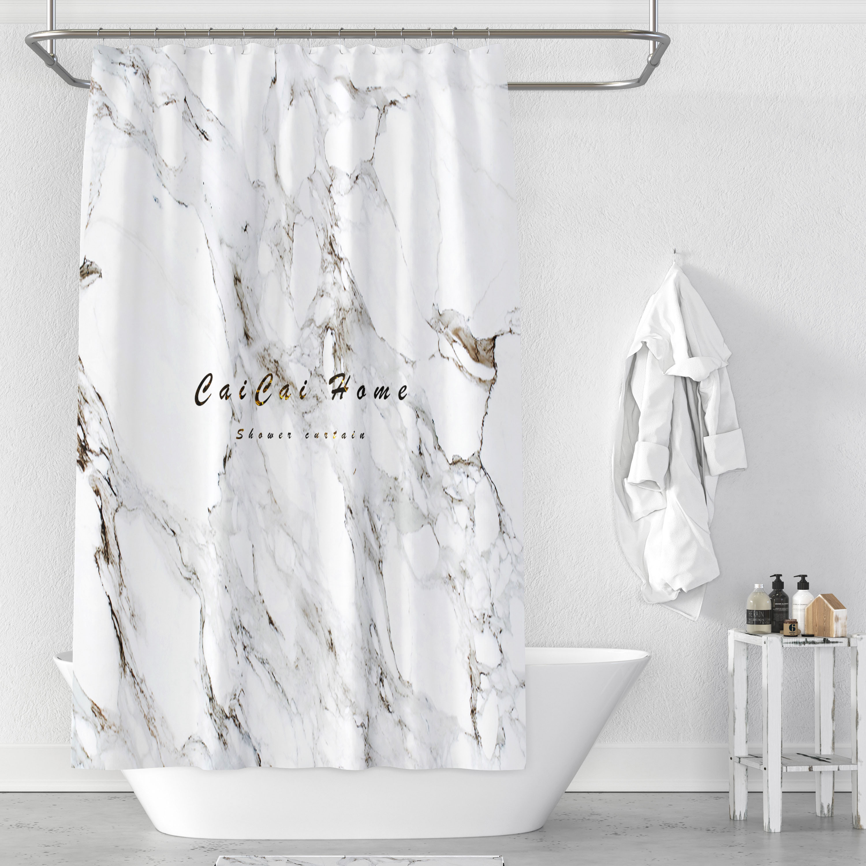 Marble pattern shower curtain Waterproof thickened mildewproof powder room bath partition window European Nordic shower curtain cloth shading