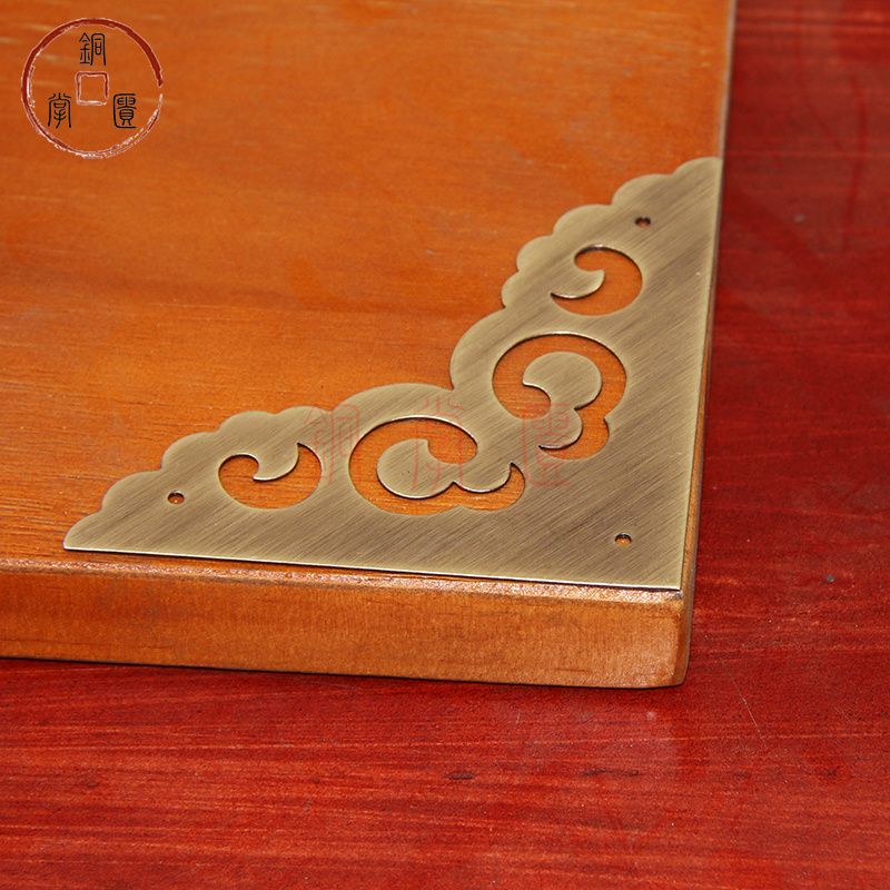 Antique Chinese pure copper corner furniture hardware corner corner wrapping edge wooden box cabinet door decoration corner flower single-sided Xiangyun corner code