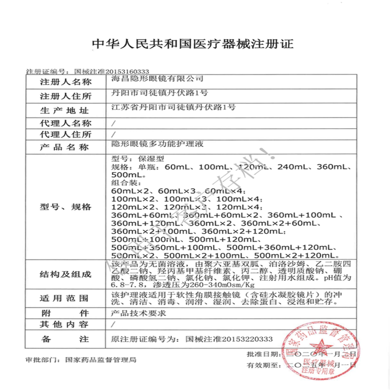 Haichang beauty contact care solution SPA moisturizing 500ml 120ml invisible myopia glasses cleaning potion size bottle