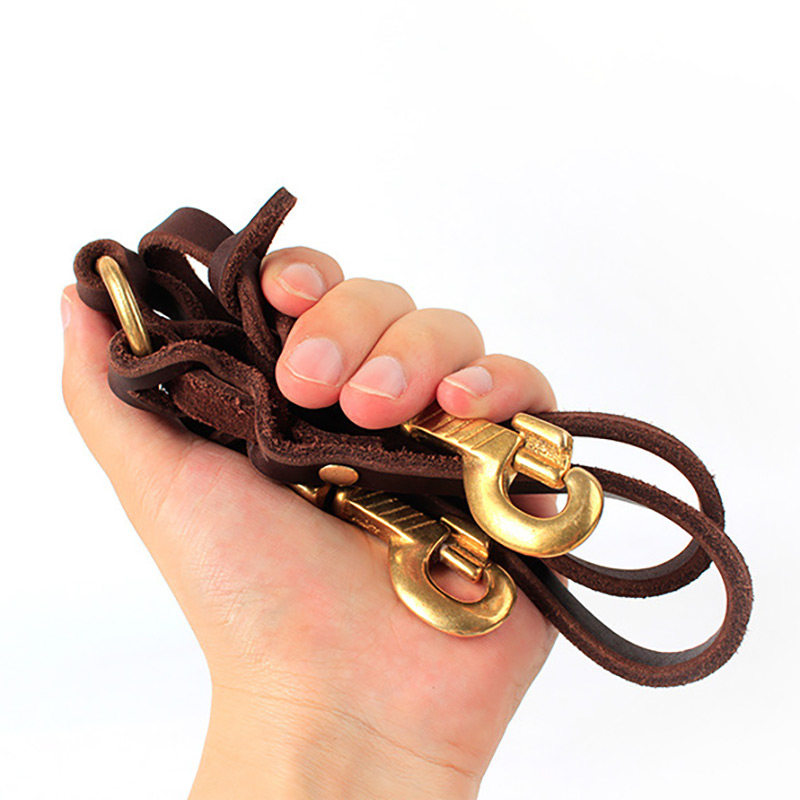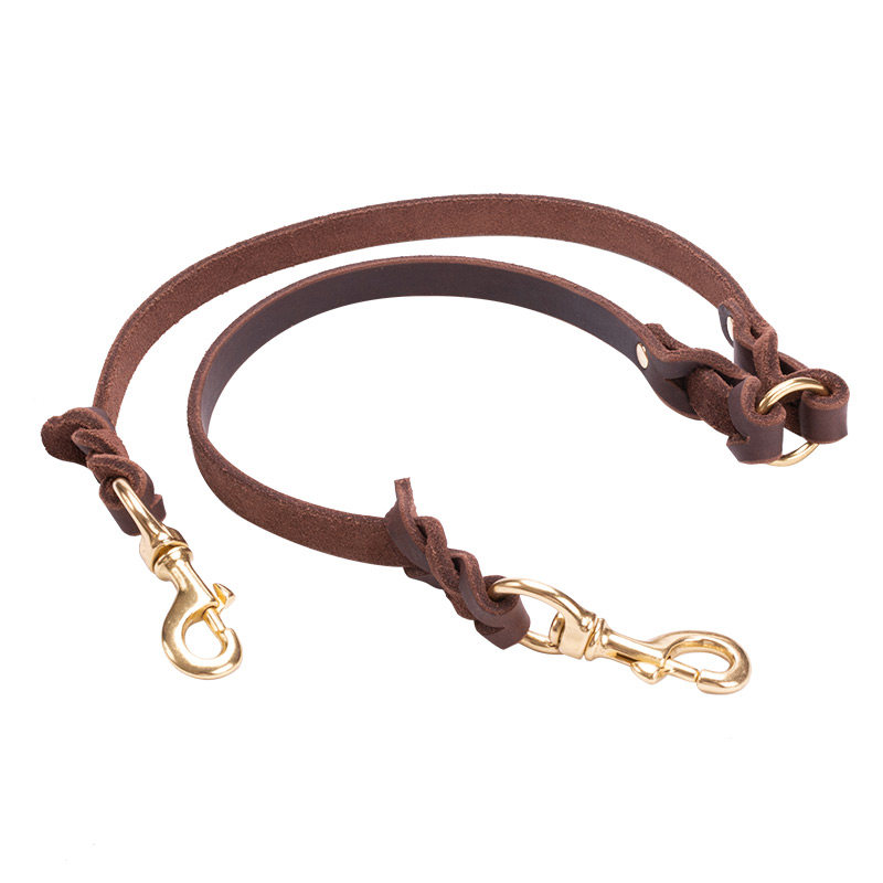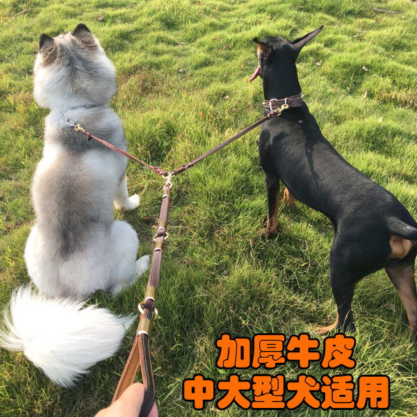 Bull Leather Traction Rope One Drag 2 Medium Large Dog Twin Dog Necklace Gold Gross Kökkid Pastel Teddy Double Head Dog Rope