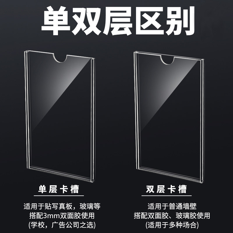 Double layer transparent acrylic plate A4 card slot organic glass plate property Intermediary Billboard Propaganda Display Case Slot