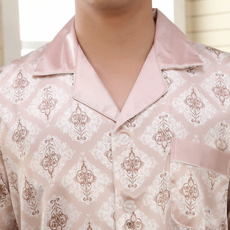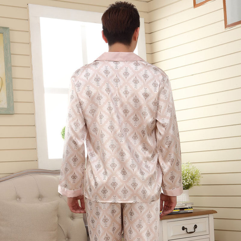 Men's Large Size Silk Pajamas Summer Youth Loose Plus Size Thin Long Sleeve Silk Casual Homewear Set