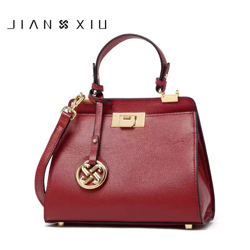 Jianxiu genuine leather bag 2020 new trendy women's bag one-shoulder Messenger bag red New Year wedding bag all-match Kelly bag