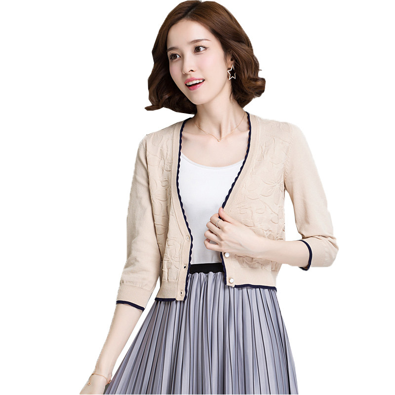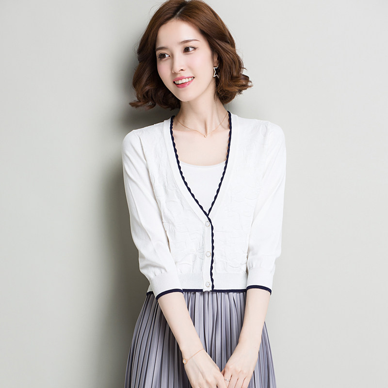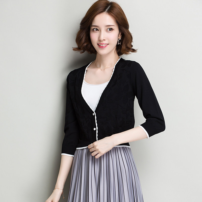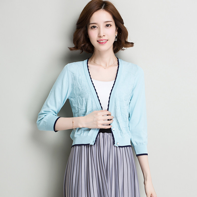 Ice silk cardigan women's summer three-quarter sleeve short high waist knitted cardigan women's short thin sunscreen air-conditioning shirt small coat