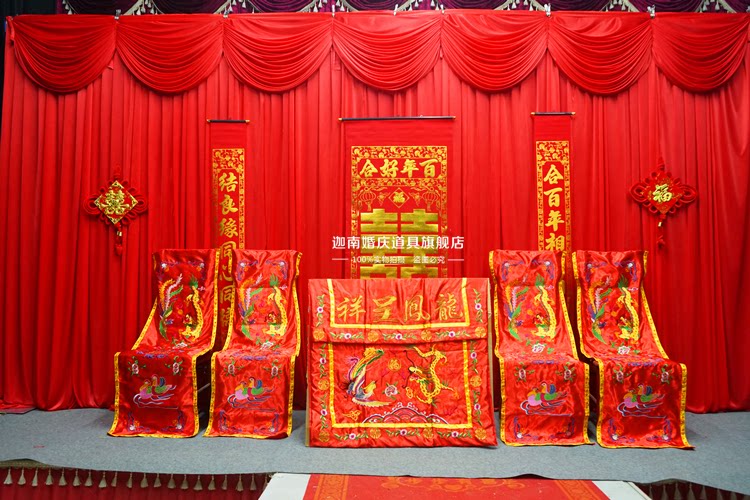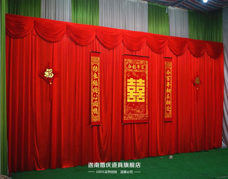 3*3 large red belt side curtain curtain head 3*6 large red belt side curtain curtain curtain head 3*6 large red bottom cloth with mantle head 3*3 large red bottom with mantle head to a set of Chinese-style five-piece new models