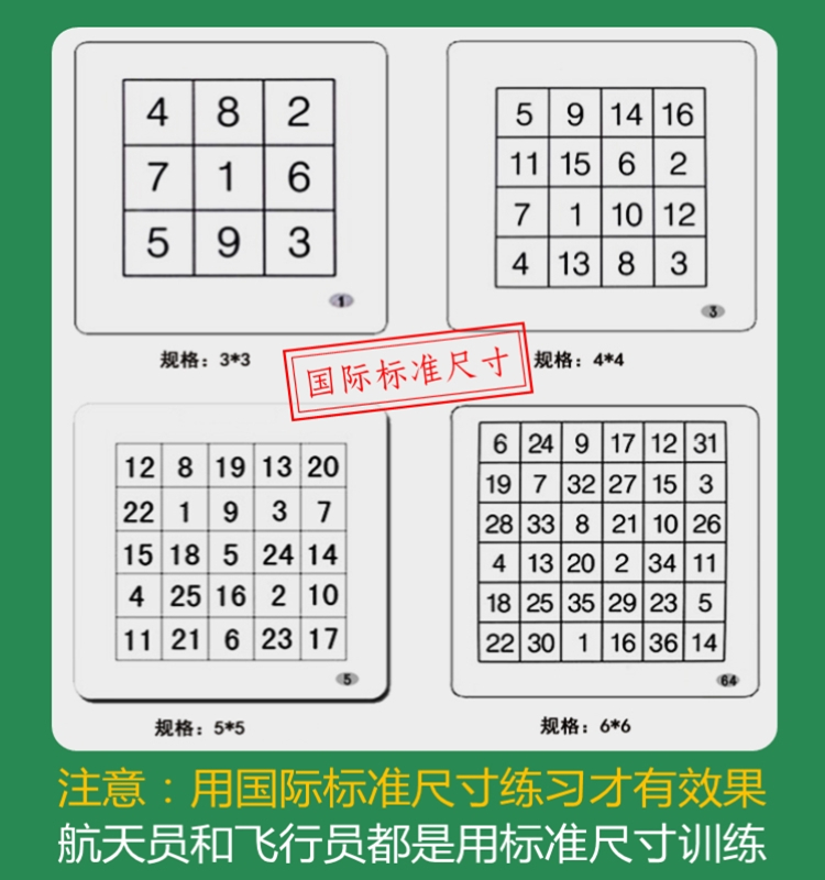 Base version 3 x 3 4 x 4 standard version 5 x 5 lift version 6 x 6 7 x 7 full set of Schulte box base standard lifting overhanging point number of cards standard lifting to hit a number of card seconds