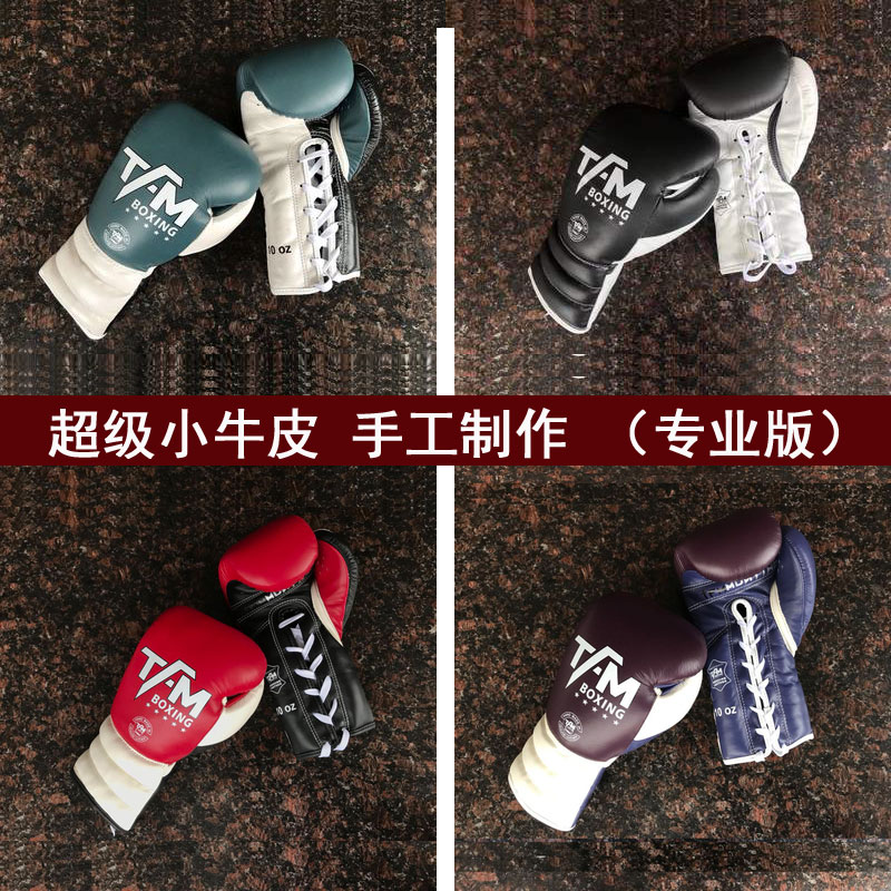 TFM cowhide boxing Muay Thai adult female training professional kneading Sanda men thick lace-up competition gloves
