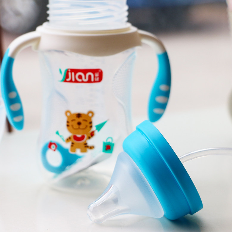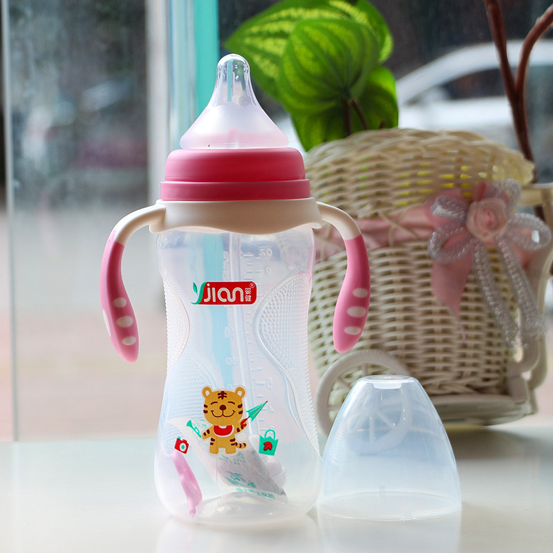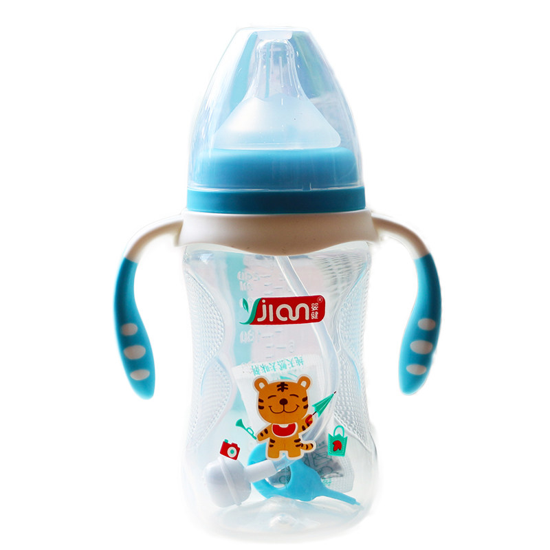Baby Jian newborn resistant PP bottle with wide mouth anti-slip automatic straw with handle bottle 300ML