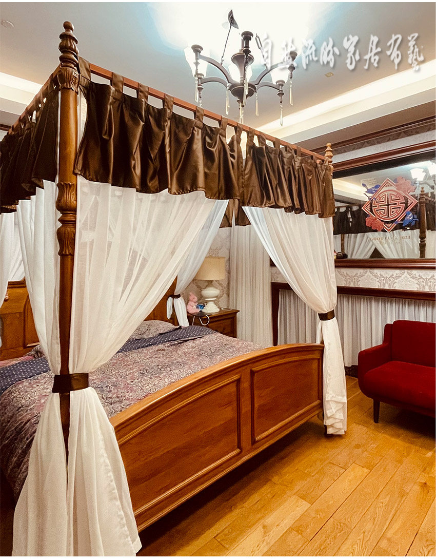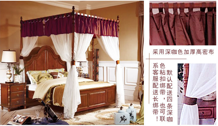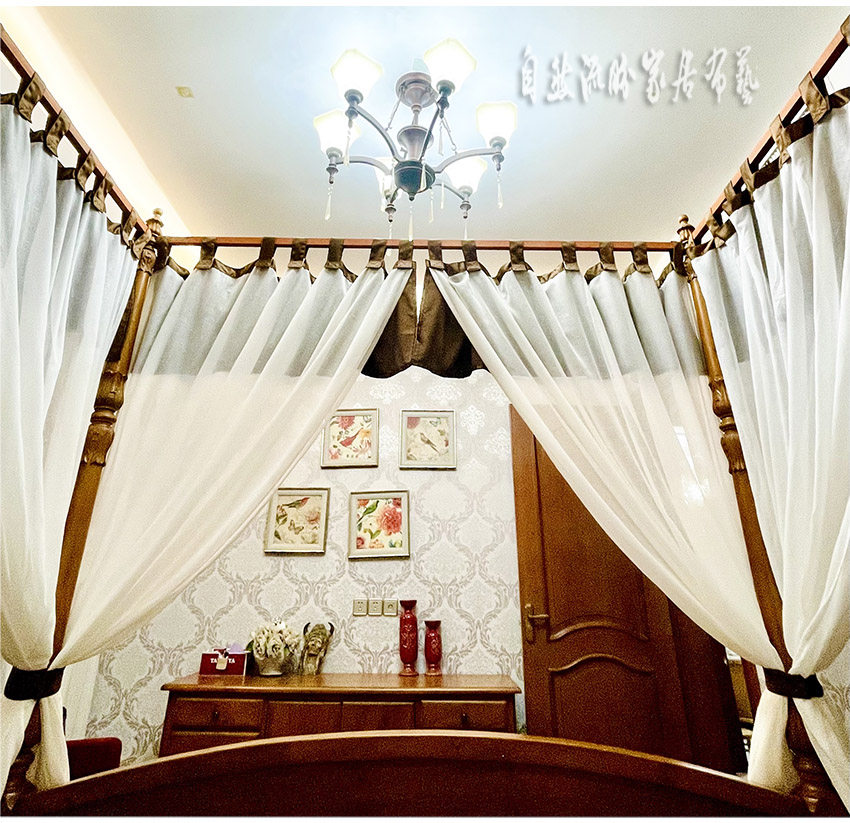 Cotton tinged Southeast Asian Wind Mediterranean American style European style iron art Four-column bed cotton linen retro hemp Mantle Bed Mantle
