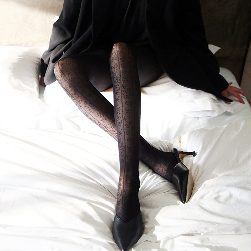 Foreign Trade Thin retro Grain Black silk Slim Vertical Stripes Sexy Heart-shaped Jacquard Pantyhose Stockings Stockings Socks stockings Sox stockings