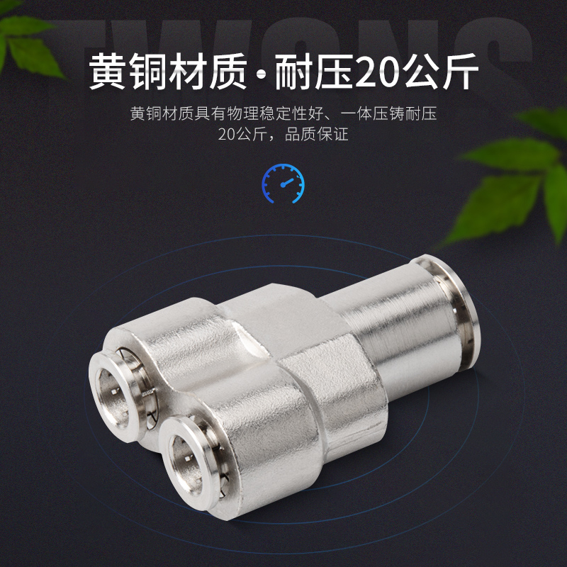 Shannes metal PYG three-way variable diameter quick-plug quick connector Y-type 16-12-10-8-6-4 pneumatic connector