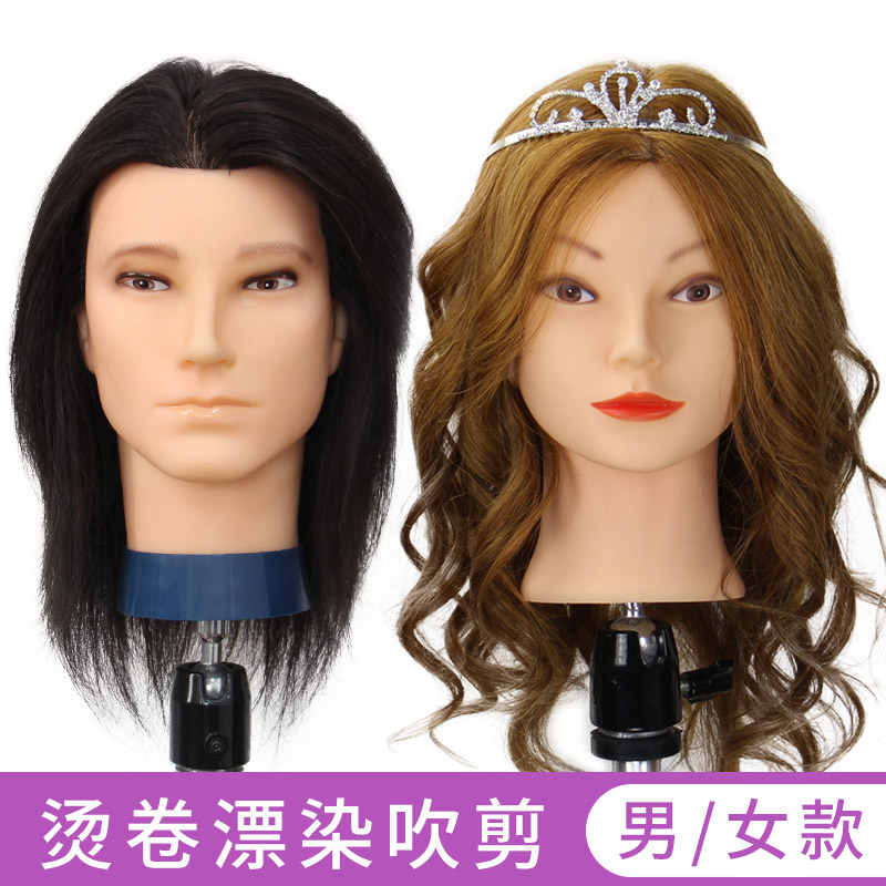 99%real hair head mold hair practice head doll head Hair cut model head can be rolled hot blow bleaching and dyeing dummy head