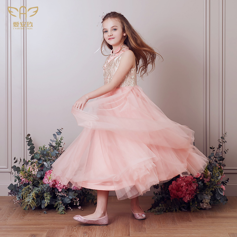 Love Anjiu new girl gown Noble Princess Dresses Dress Fluffy Walking Show Flowers Child Wedding Dress Dance Performance Dresses Dress