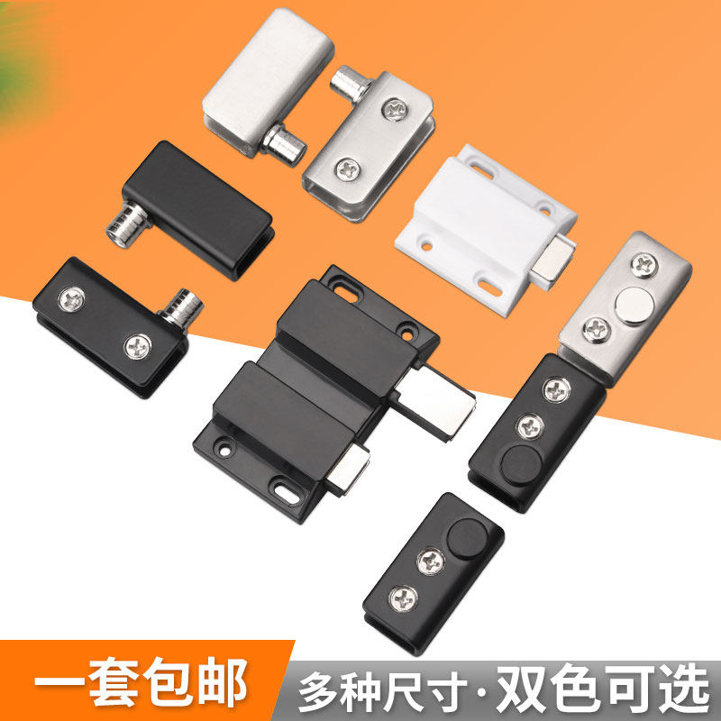 Stainless steel single door double door magnetic touch glass cabinet door free bore hinge upper and lower rotating shaft wine cabinet slingshot open magnetic hinge