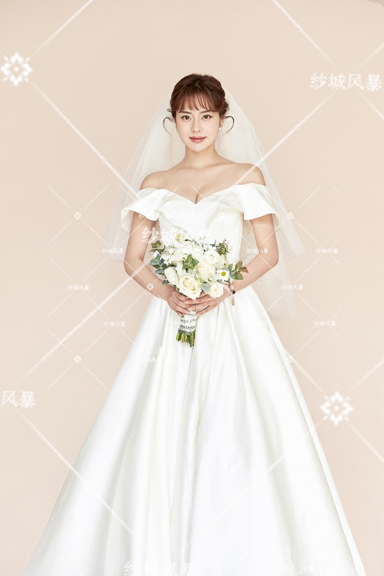 New photo gallery themed wedding dress Korean version Jane about one shoulder satin gown lovers Write a real photo photo clothing