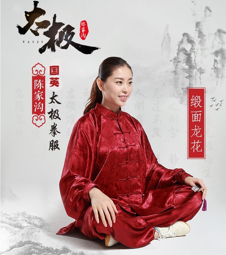 Chen Jiagou Woman Golden Yellow Dragon Thread Tai Chi Clothing Satin Silk Satin Middle-aged Men Martial Arts Gymnastics Performance Clothing China Wind Autumn