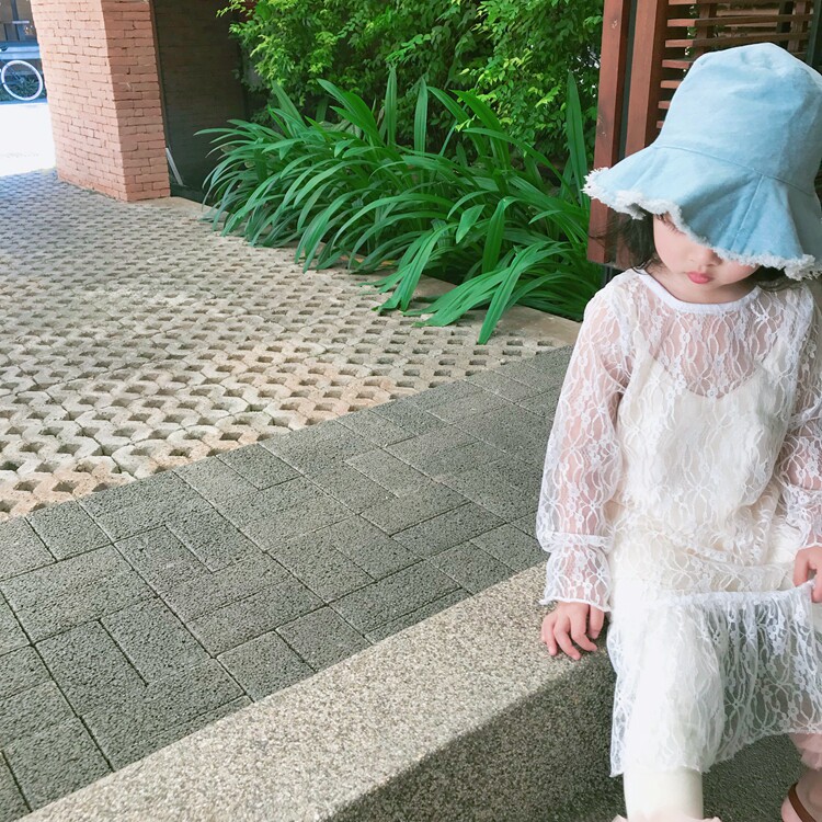 Clearance Summer new girls white lace dress long version skirt inner suspender skirt baby skirt two-piece set