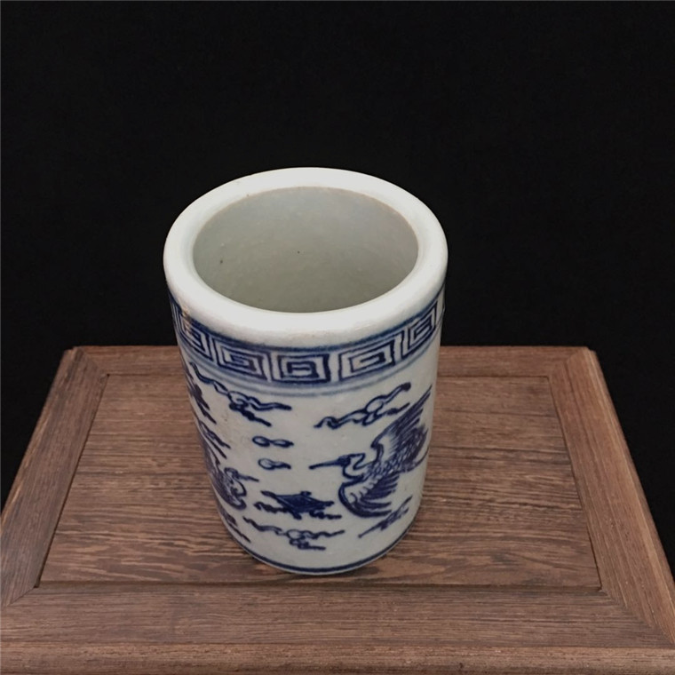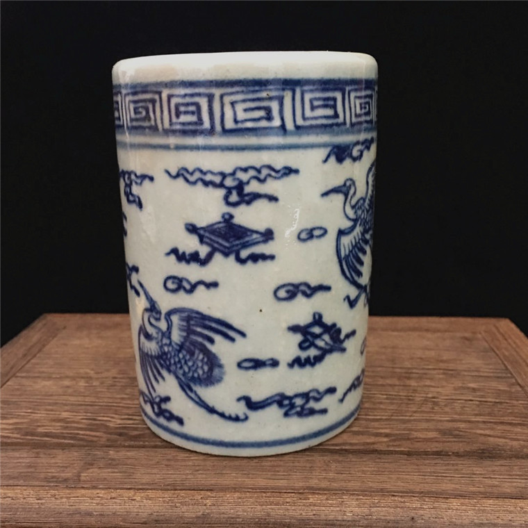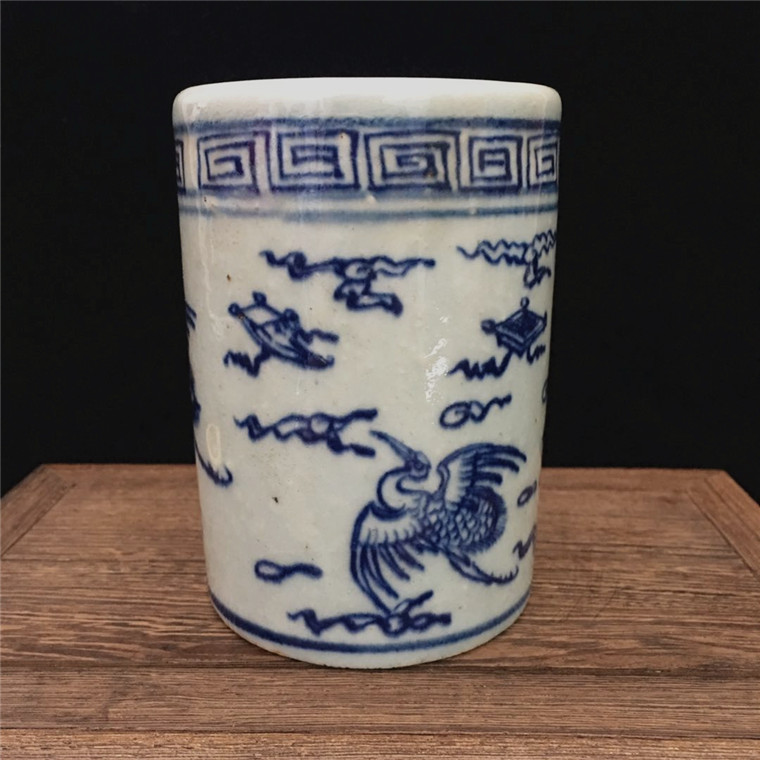 Clear Light Clue Green Flower Hand Painted Clouds Crane Pen Holder Wenfang Four Treasure Antique Ancient Play Imitation Ancient Objects Vintage Old Goods-Taobao