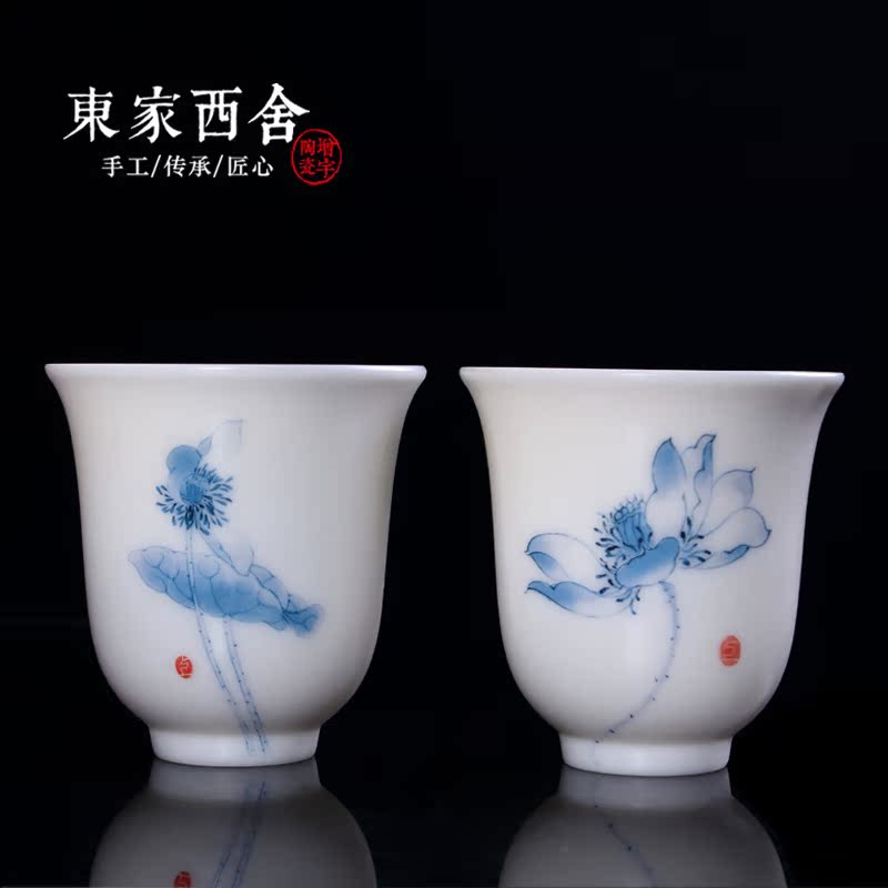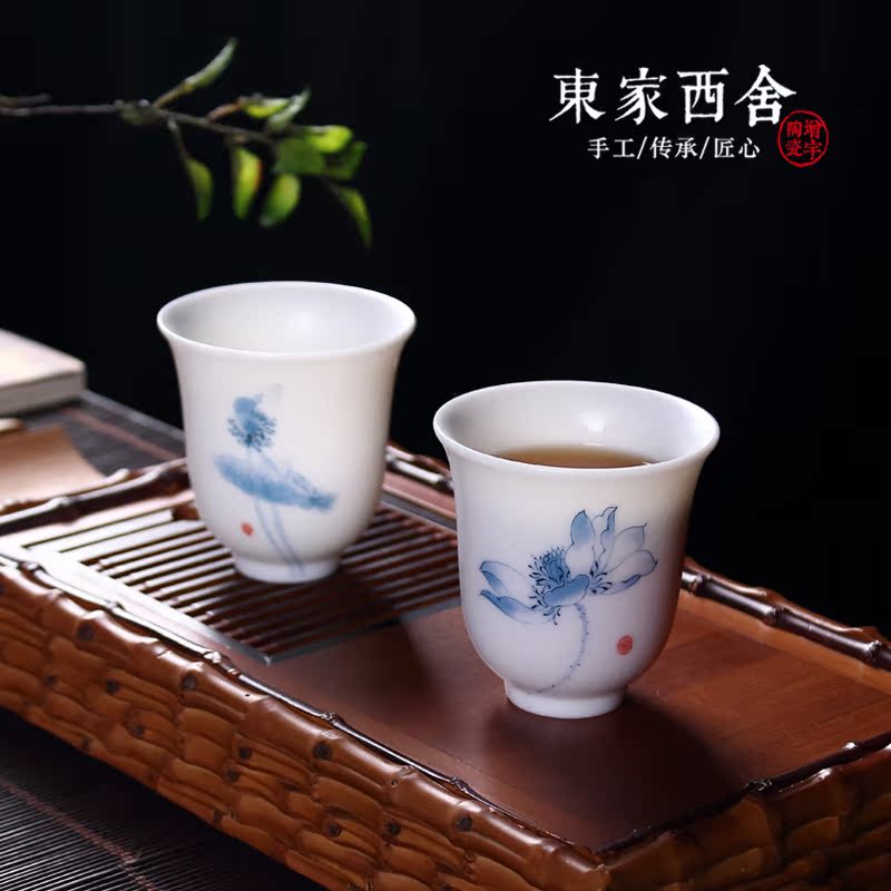 East Home Upscale Defied White Porcelain Tea Cup Goat Fat Jade Vegetarian Tea Cup Lotus Individual Cup Master's Cup Single Cup Ceramics