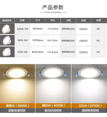 NVC lighting LED downlight Living room ceiling hole light Hole light Embedded 7 5-8 cm hole light 3W5W Aisle light