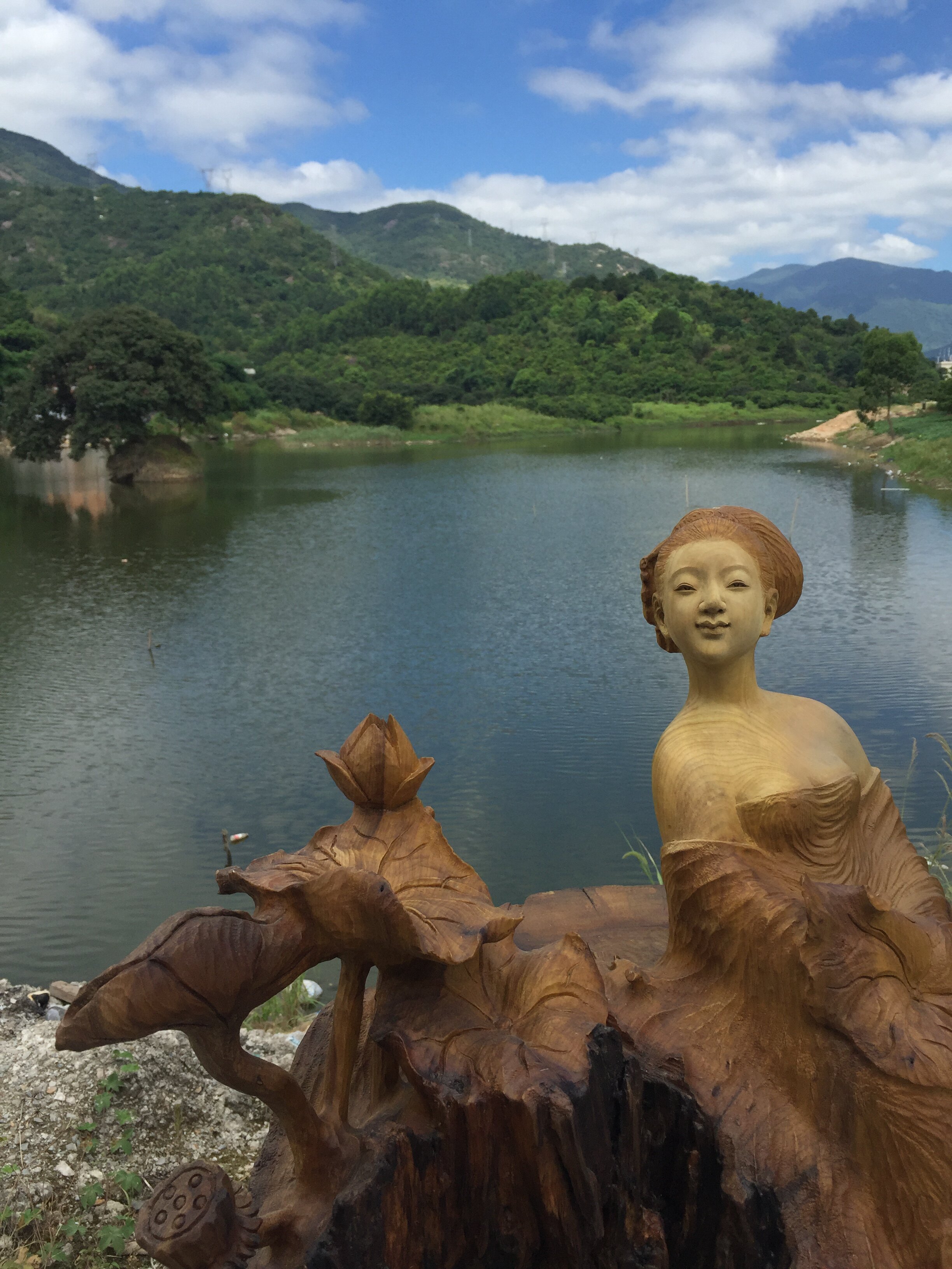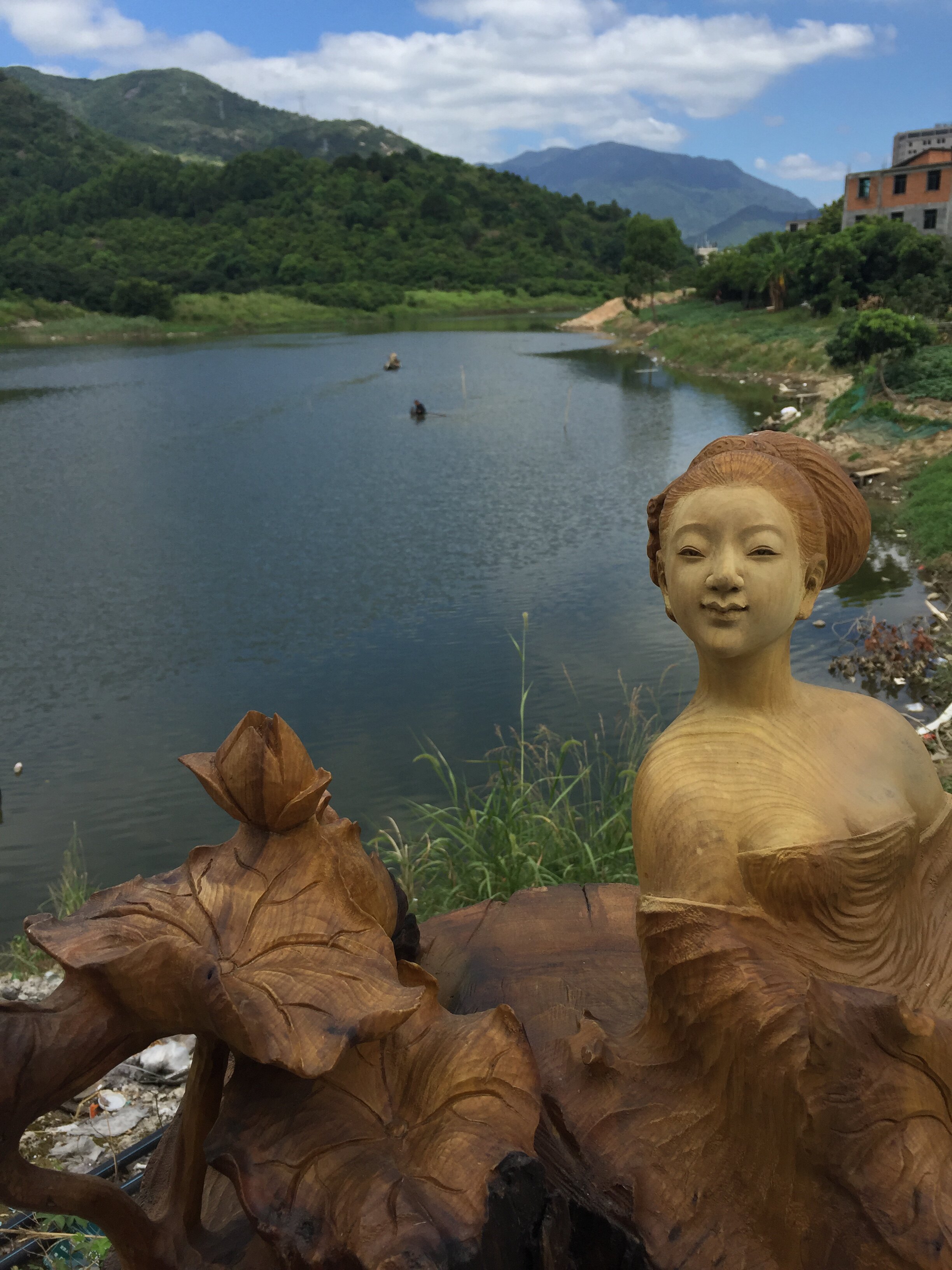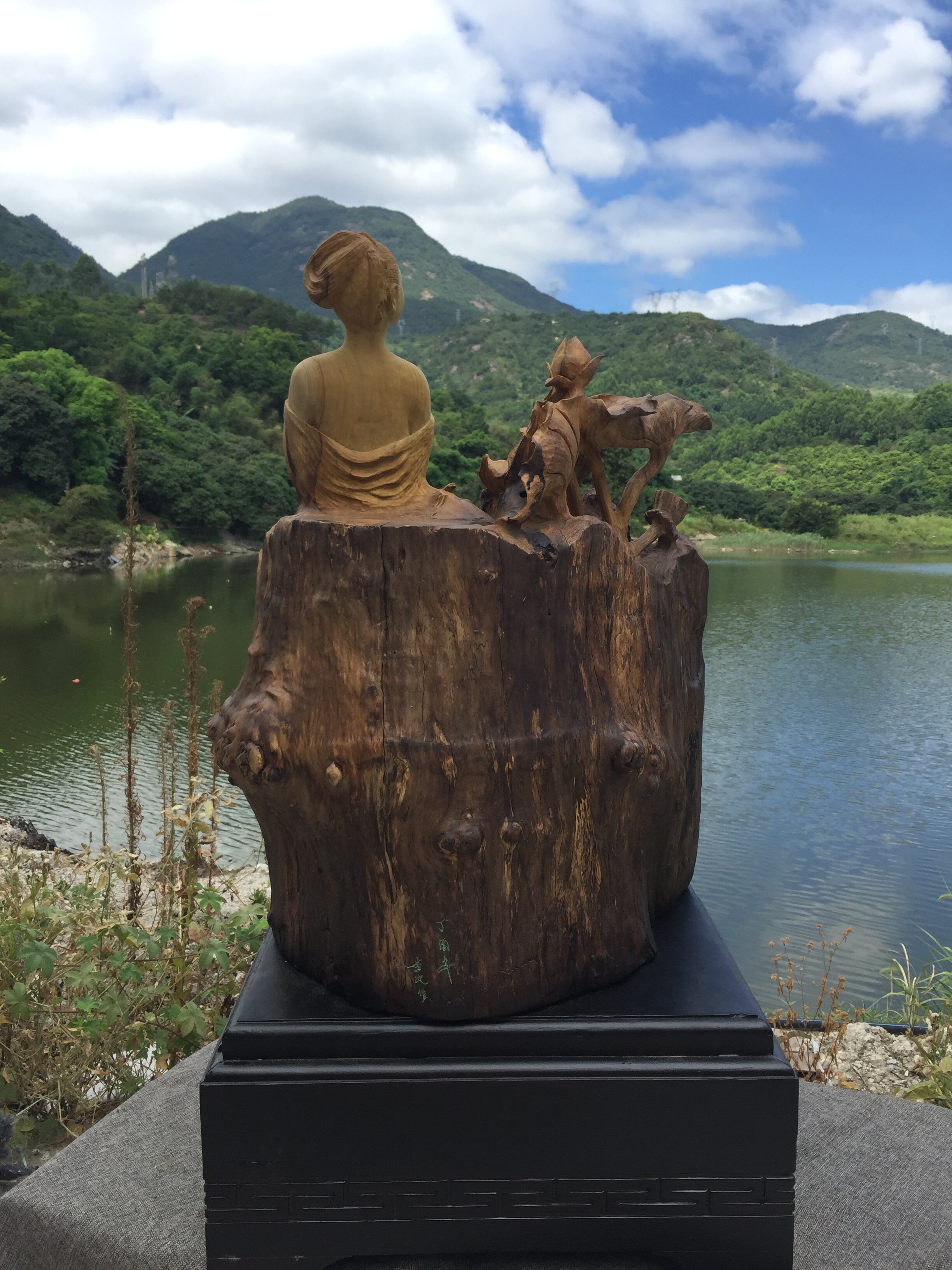 Nanmu Lotus Fairy Figure Engraving Customizable Fujian Wood Carved Large Buddha Beauties Swing pieces