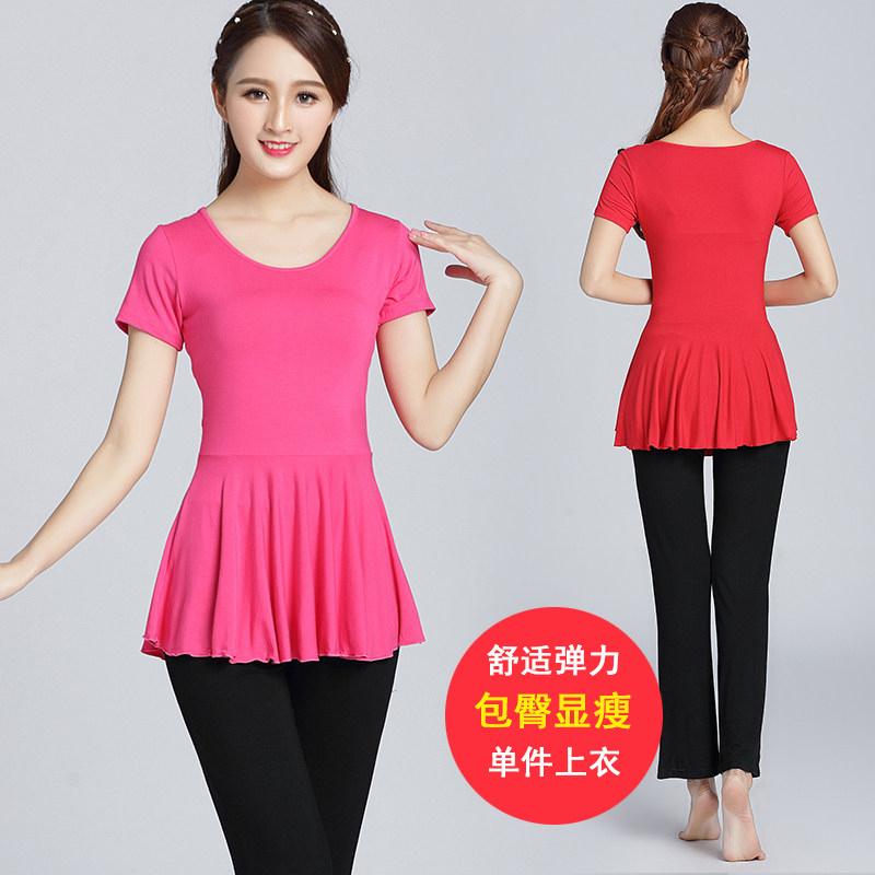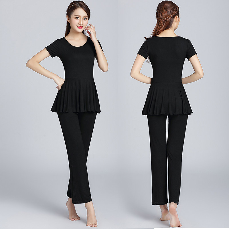 Yang Liping square dance clothing spring and summer short-sleeved exercise clothes modal female adult black dance clothes top