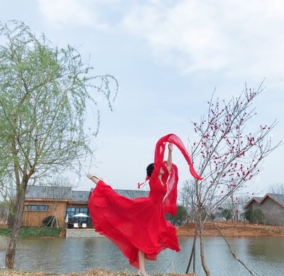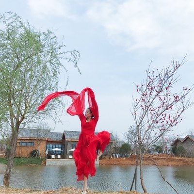 Classical performance costumes water sleeve dance 2018 new ancient costume Hanfu Caiwei dance costume Jinghong dance performance costume red