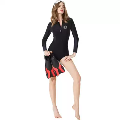 New large size sports swimsuit women's long-sleeved one-piece triangle surfing snorkeling water training racing sunscreen conservative swimsuit