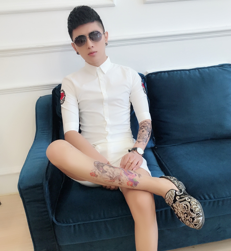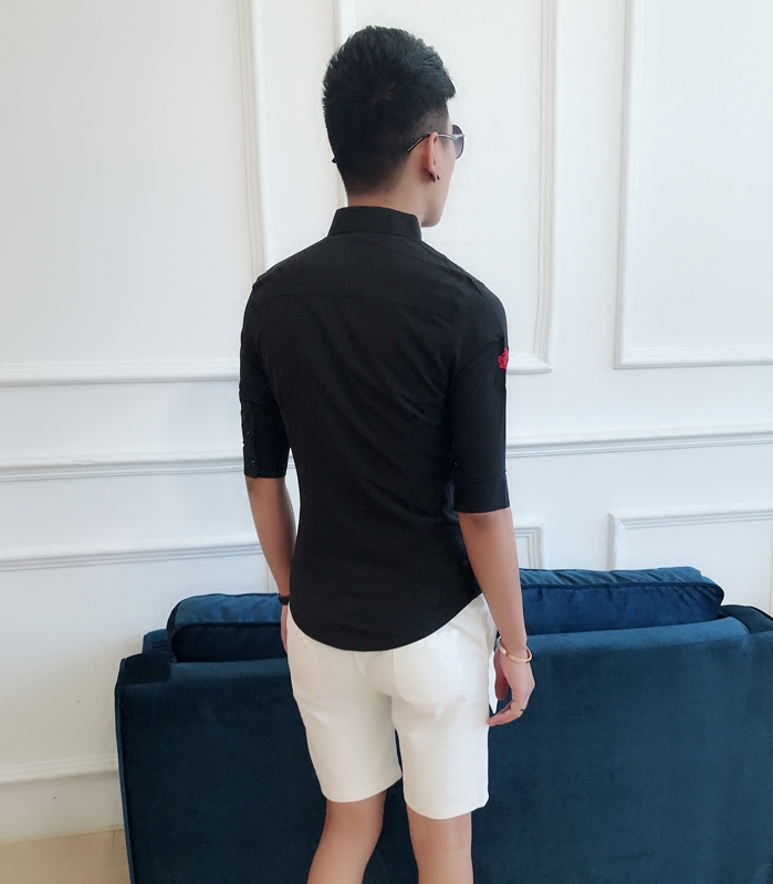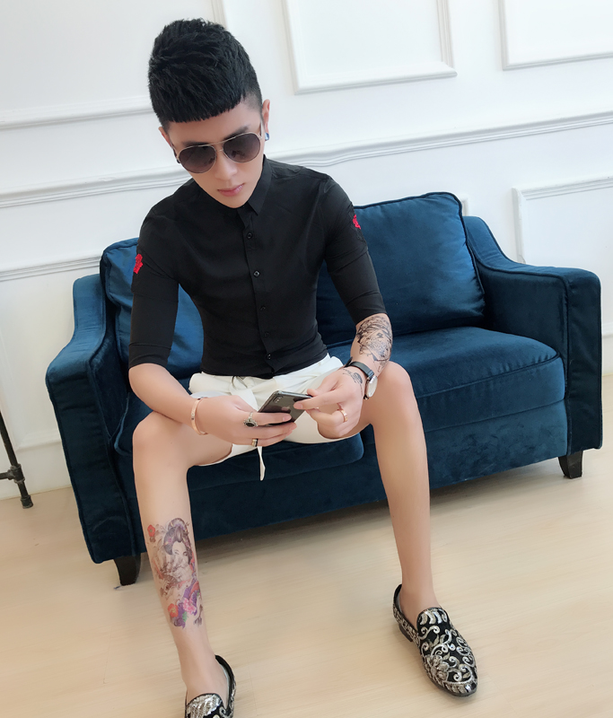 Summer trend new shirt men's five-point mid-sleeve thin Korean style hair stylist shirt fashionable and handsome slim top