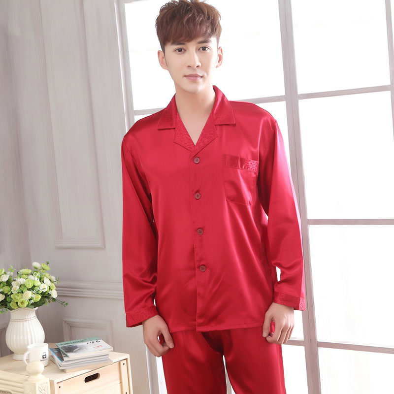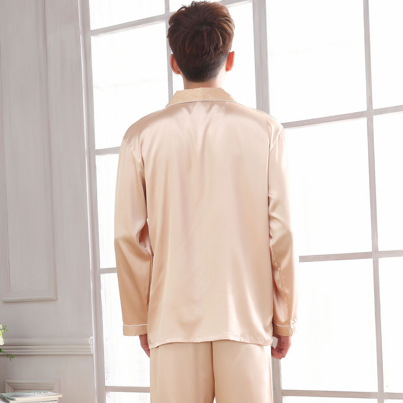 Men's pajamas silk Korean high-end spring thin ice silk homewear trousers cardigan suit summer long sleeves